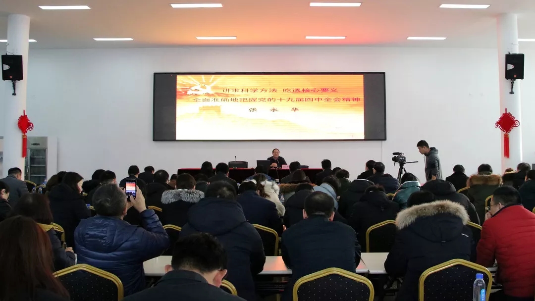 為更好地學(xué)習(xí)貫徹黨的十九屆四中全會精神,1月10日,集團(tuán)特邀市委、市紀(jì)委黨的十九大、十九屆四中全會精神、黨風(fēng)廉政建設(shè)宣講團(tuán)成員,市紀(jì)委監(jiān)委宣傳部副部長、一級調(diào)研員張永華同志到集團(tuán)作黨的十九屆四中全會精神專題宣講。集團(tuán)領(lǐng)導(dǎo)班子成員及集團(tuán)機關(guān)支部全體黨員參加活動。