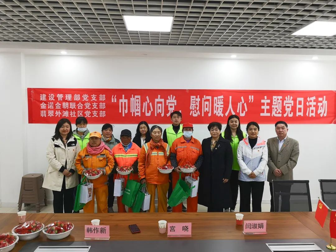 3月8日,集團建設(shè)管理部黨支部、金諾金朝聯(lián)合黨支部赴華山街道翡翠外灘社區(qū)開展“巾幗心向黨,慰問暖人心”主題黨日活動。