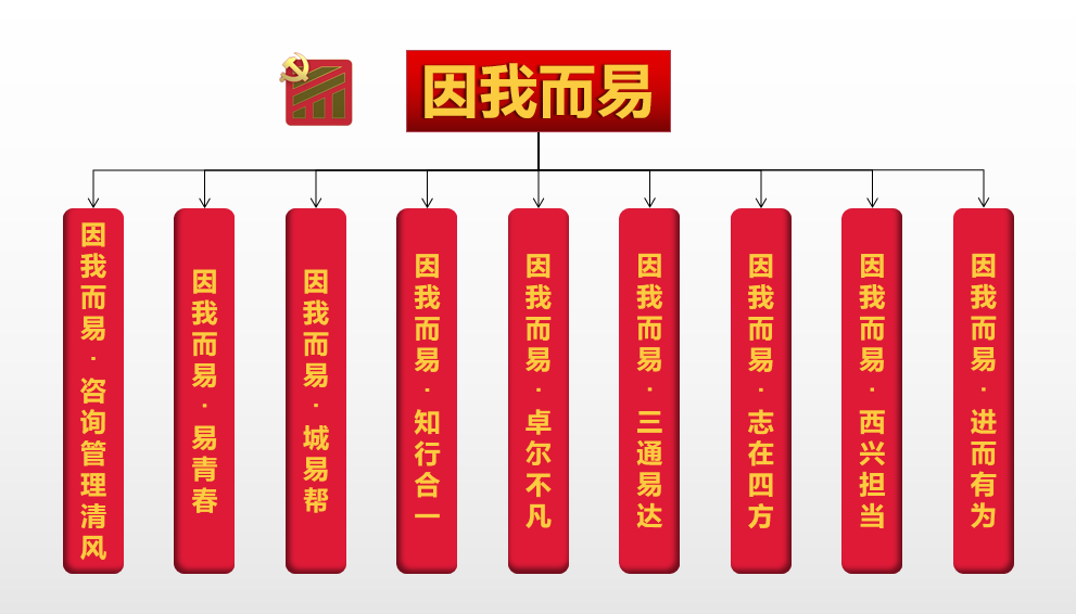 近年來,易方達(dá)公司按照建設(shè)集團(tuán)黨委“1+N+n”品牌創(chuàng)建總體布局,把黨建品牌與企業(yè)文化,項(xiàng)目管理、監(jiān)理、全過程工程咨詢主業(yè),行業(yè)數(shù)字化轉(zhuǎn)型等深度融合,形成“因我而易”黨建品牌為“1”,以點(diǎn)帶面,充分發(fā)揮自身優(yōu)勢,集中力量,挖掘資源,先后培育出“因我而易·咨詢管理清風(fēng)”廉潔文化品牌,“因我而易·易青春”團(tuán)委品牌,“因我而易·城易幫”“因我而易·志在四方”等支部品牌,形成亮點(diǎn)紛呈、百花齊放的“1+9”的黨建品牌矩陣。